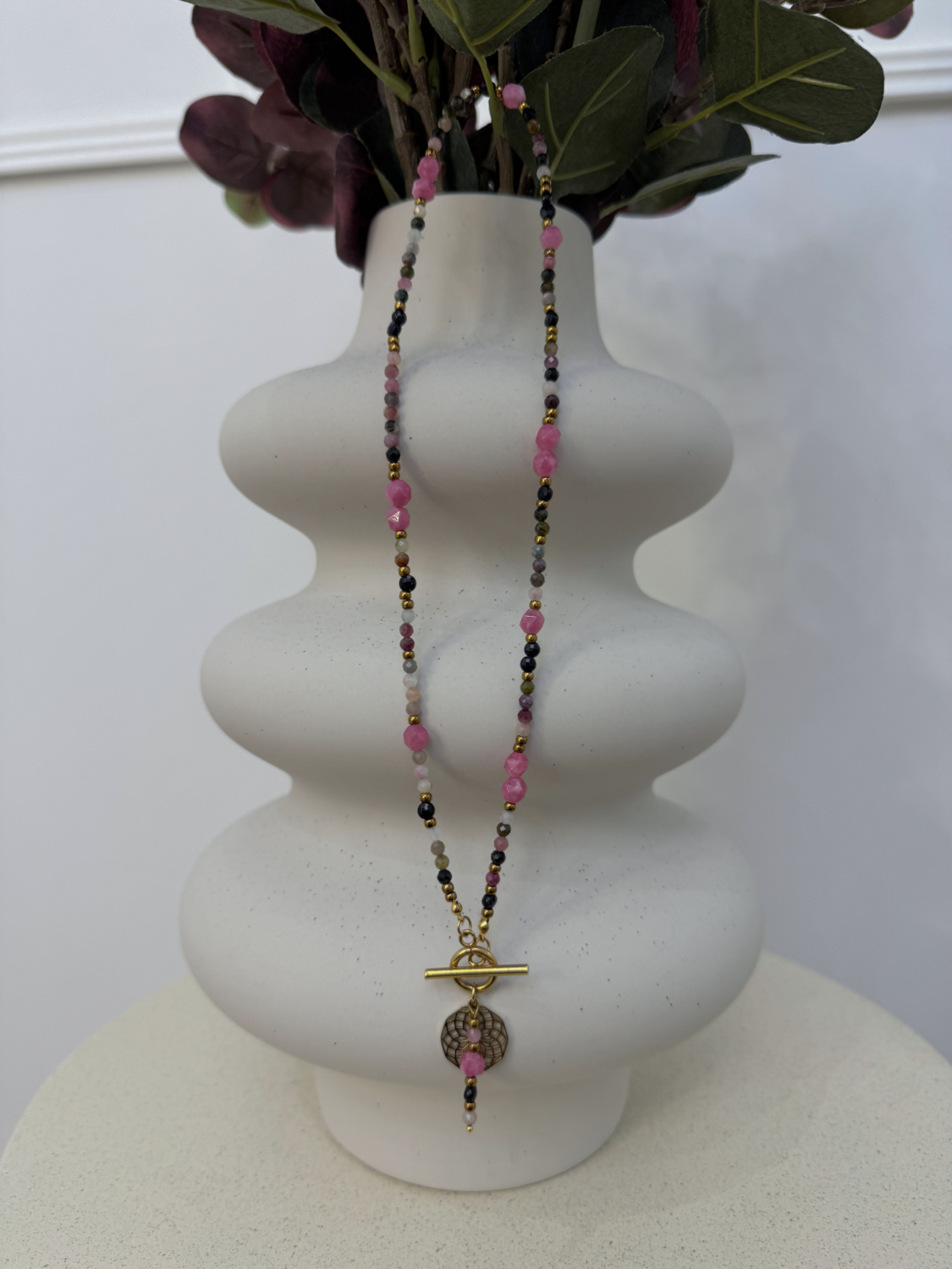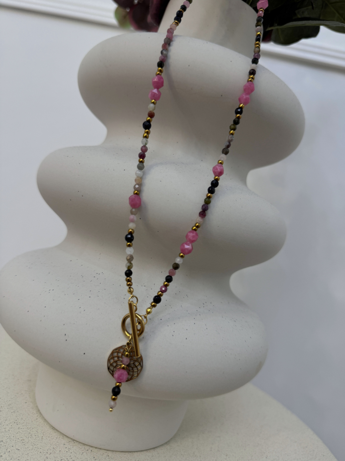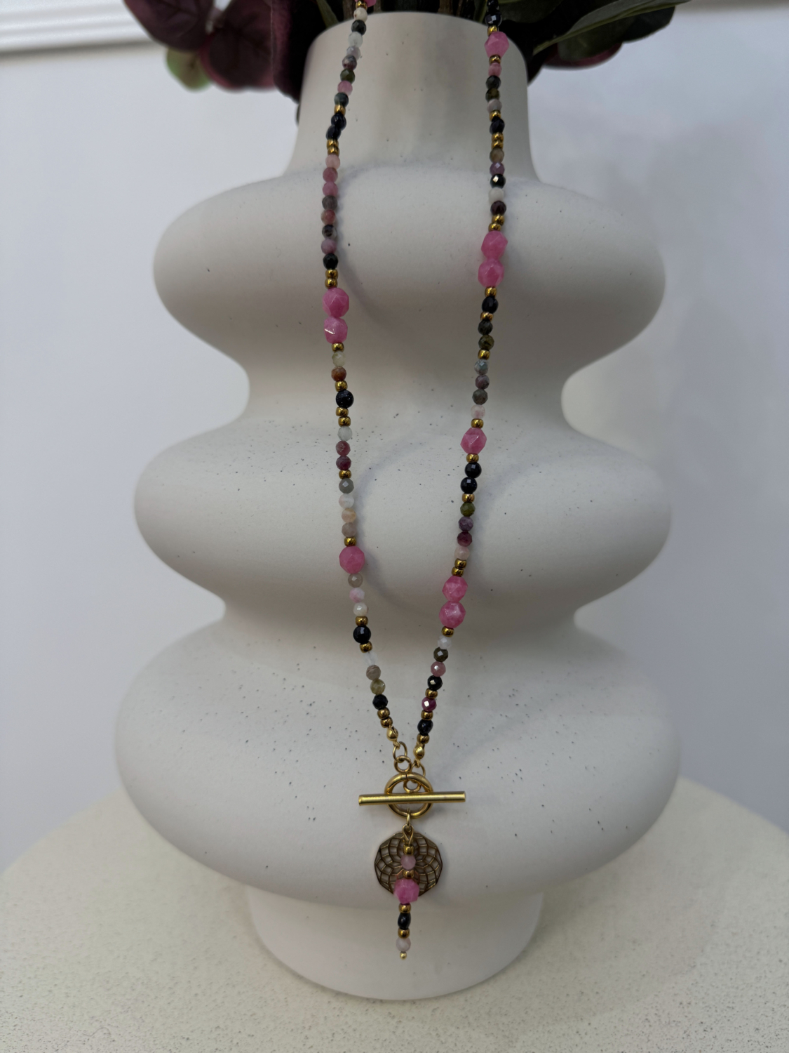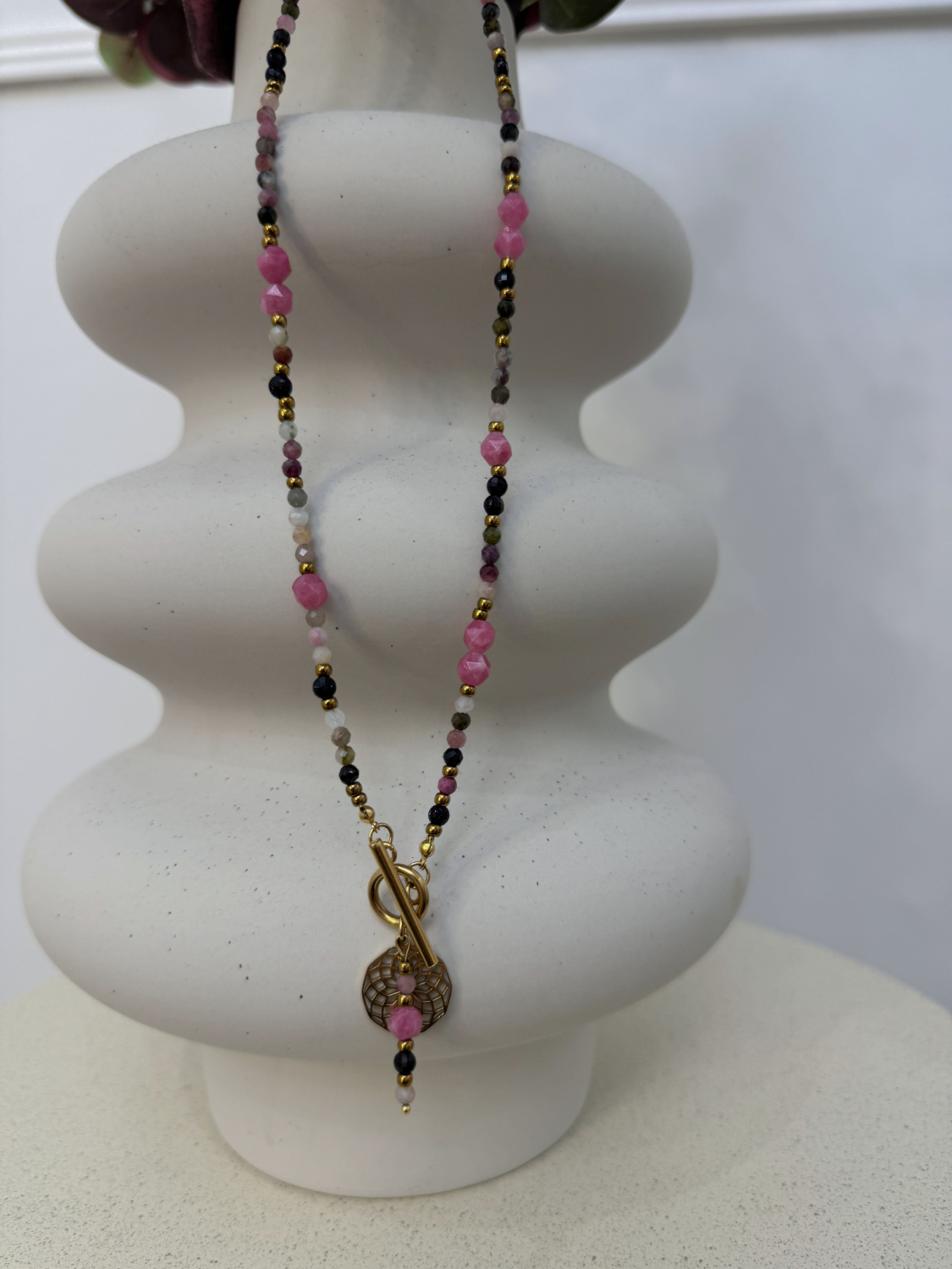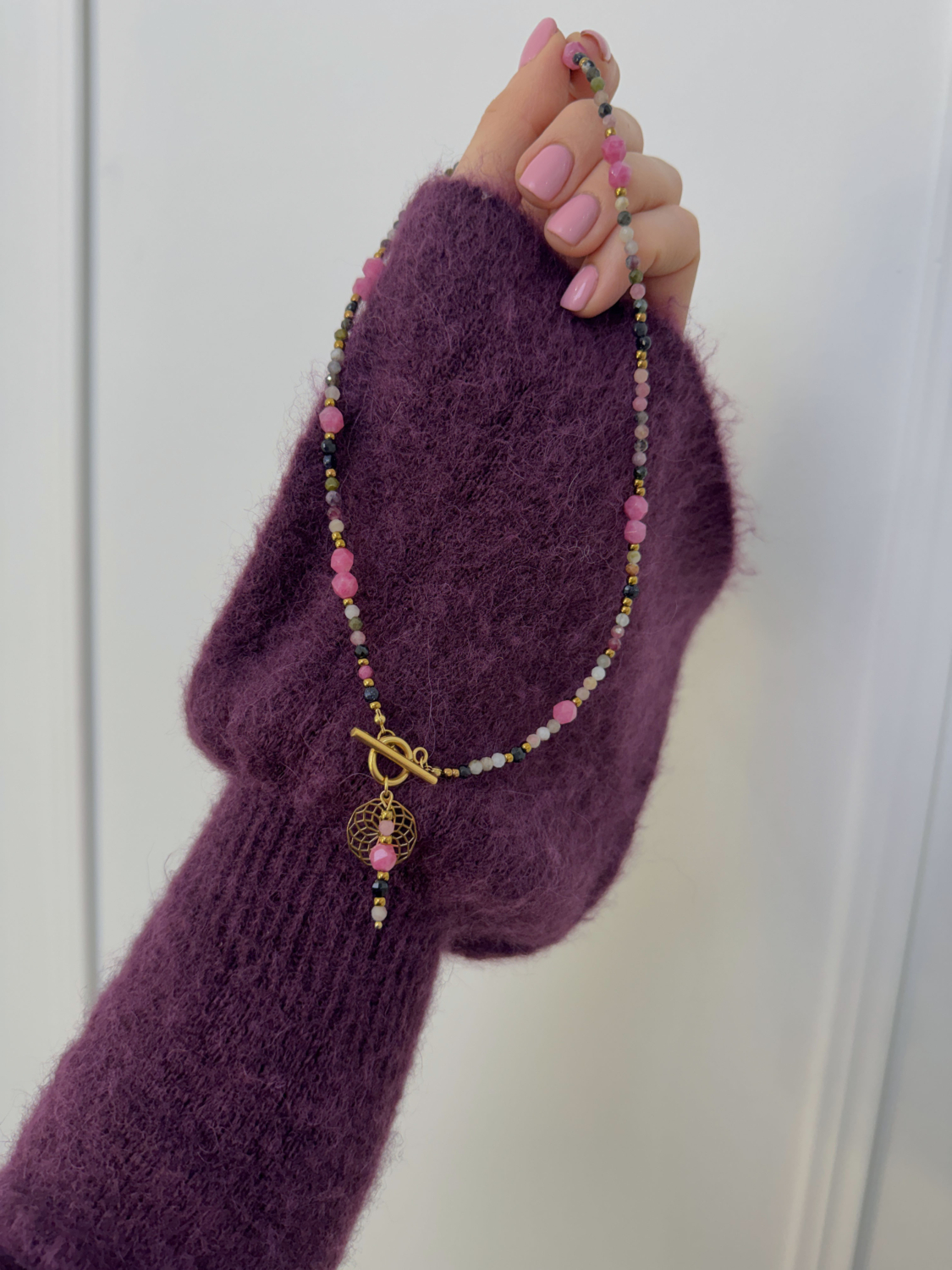 Naszyjnik Rodonit Czerwony Turmalin Noc Kairu