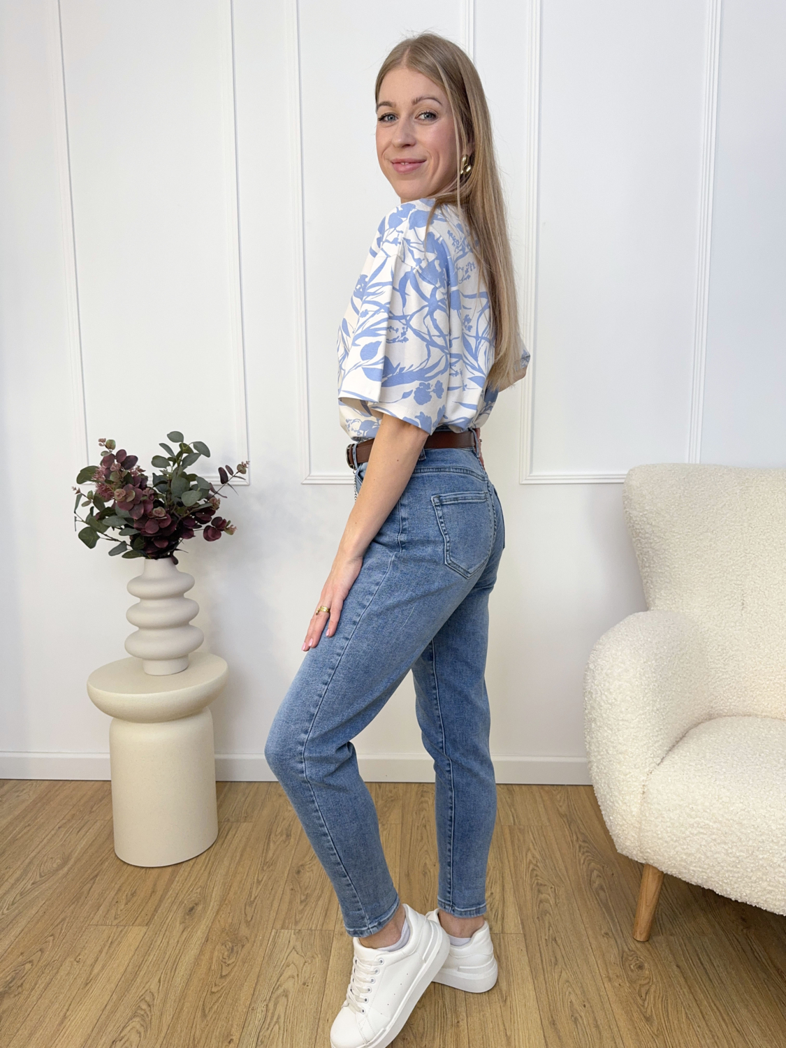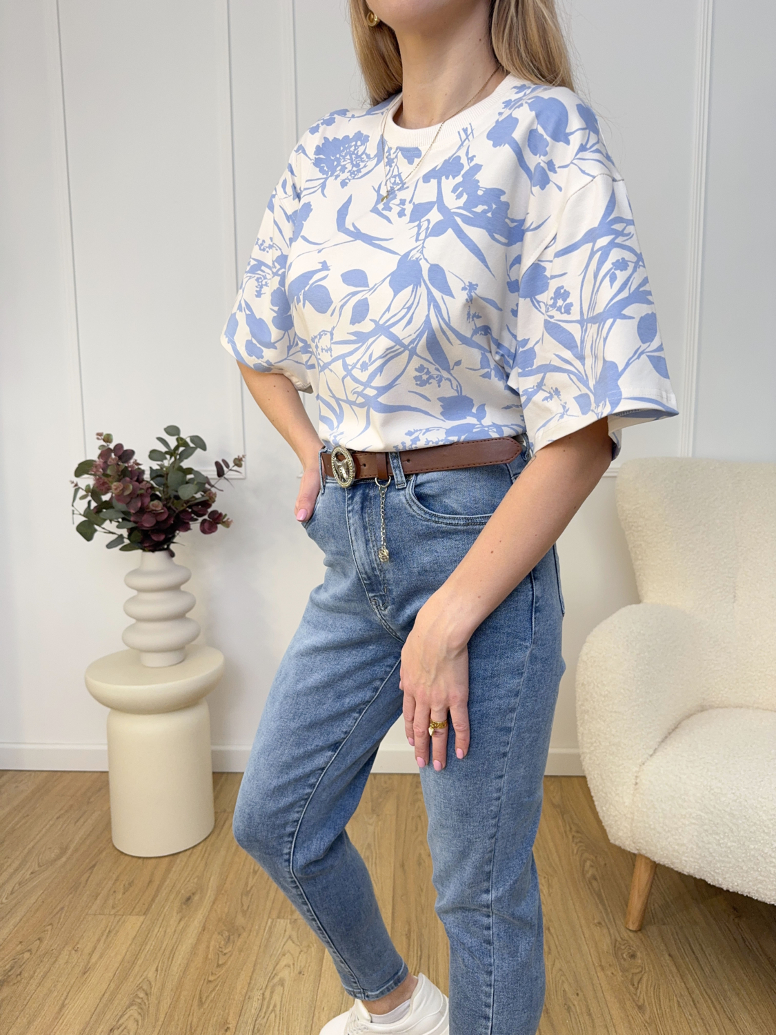 T-shirt Biały W Niebieskie Wzory Lenoshka