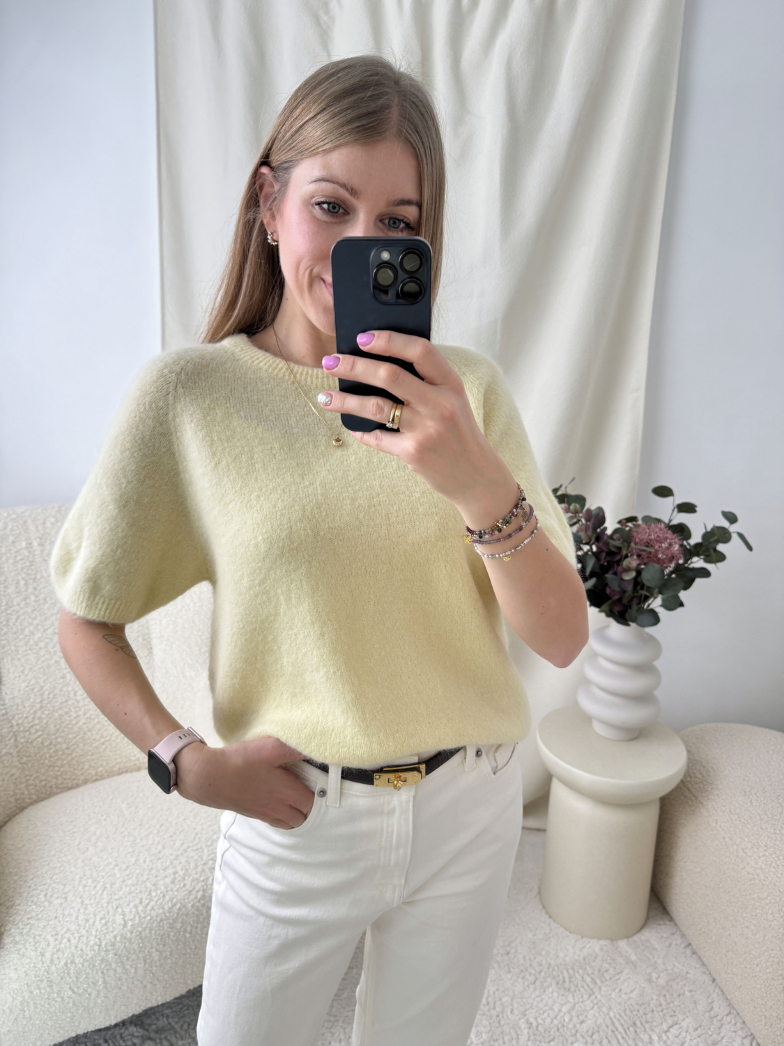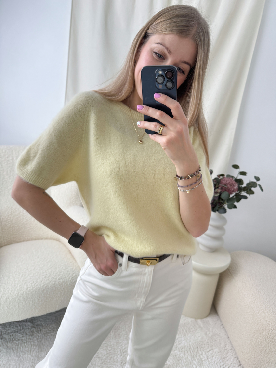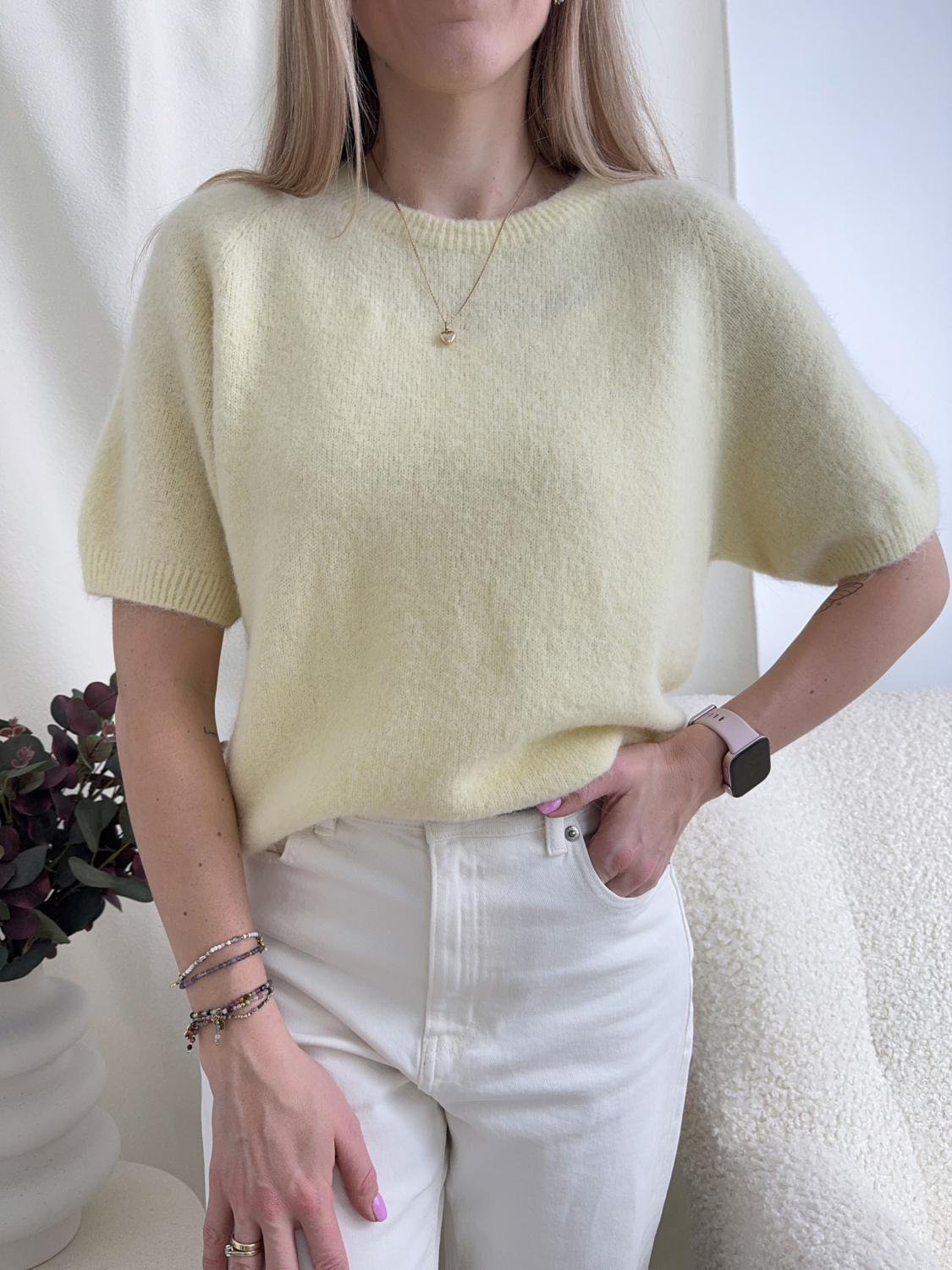 Cytrynowy Sweterek Z Krótkim Rękawkiem
