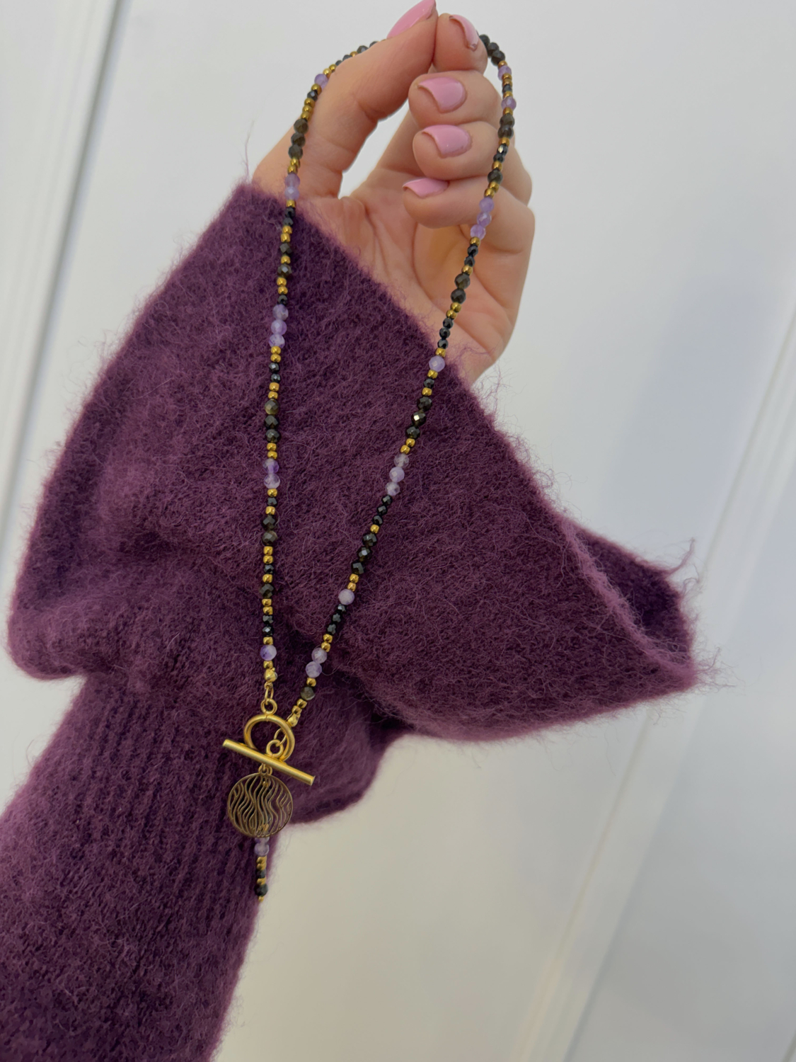 Naszyjnik Obsydian Ametyst