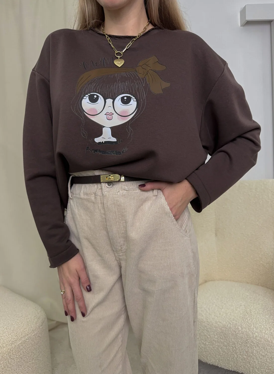 Piękna, bawełniana bluza w kolorze zgaszonej czerwieni.