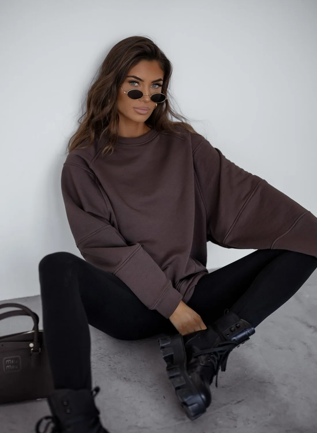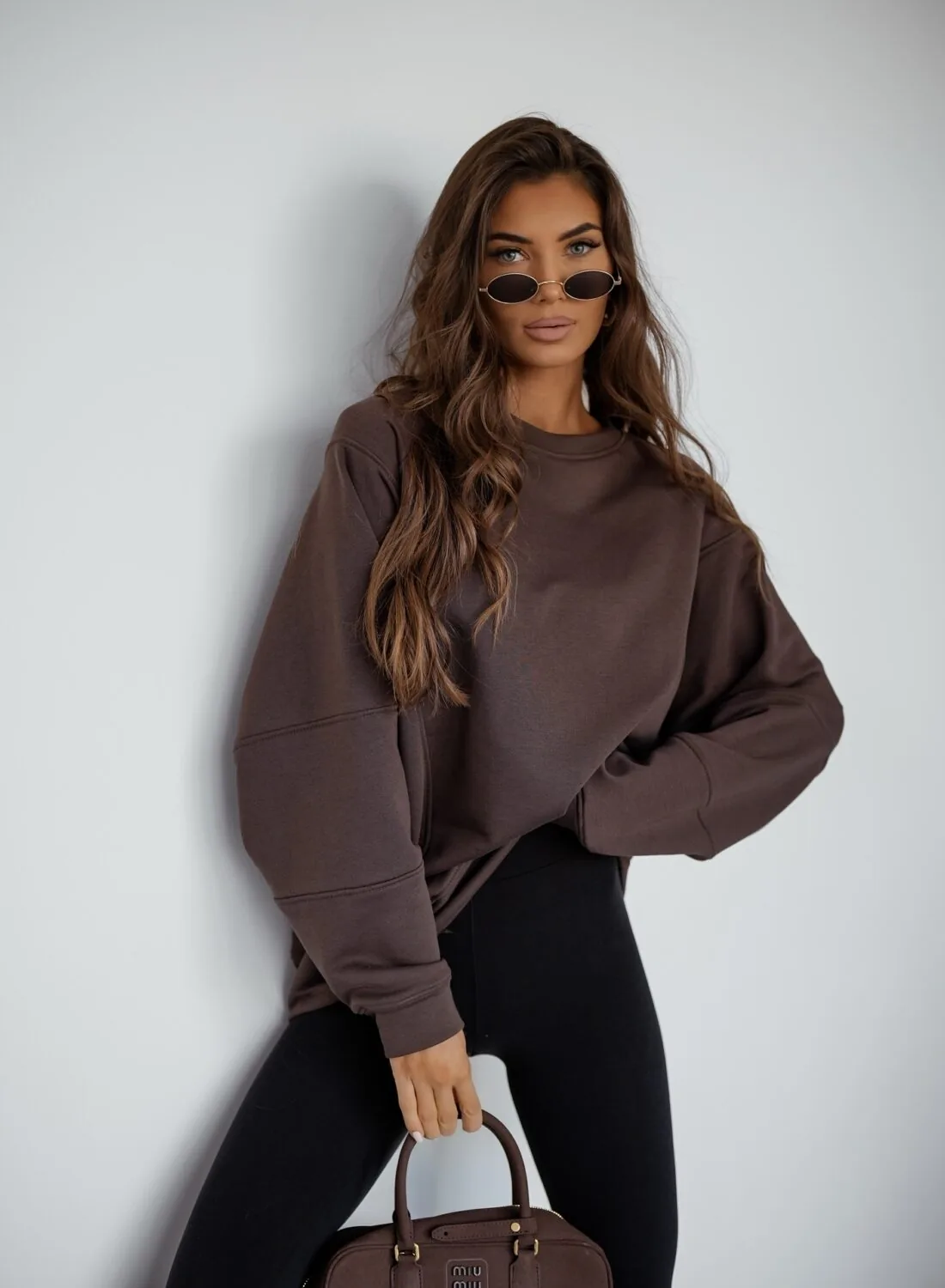 Bluzy mają fason oversize. Bluza ma wykończenia rękawów i dekoltu z szerszego prążka.