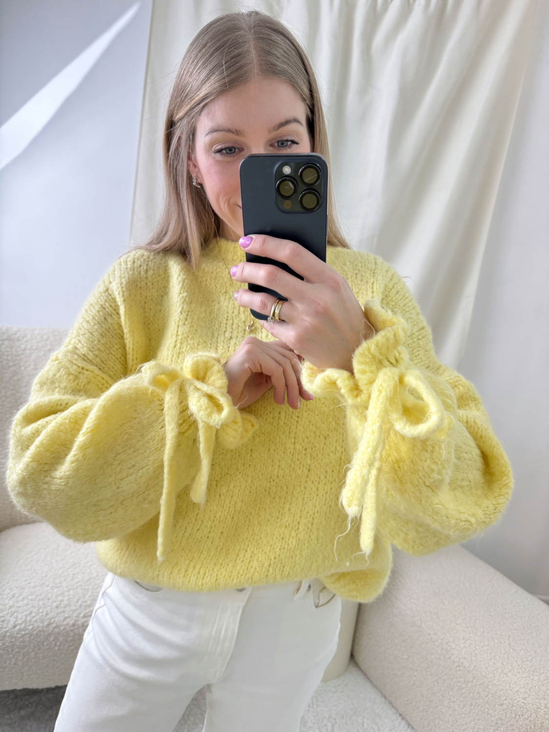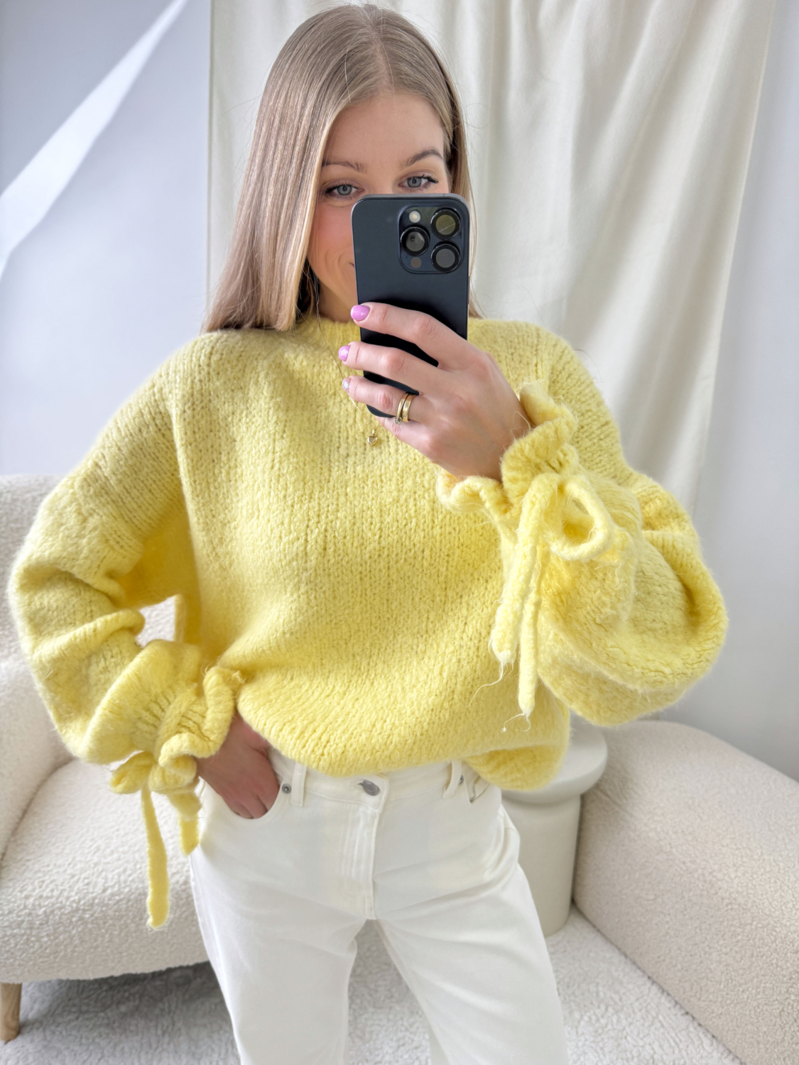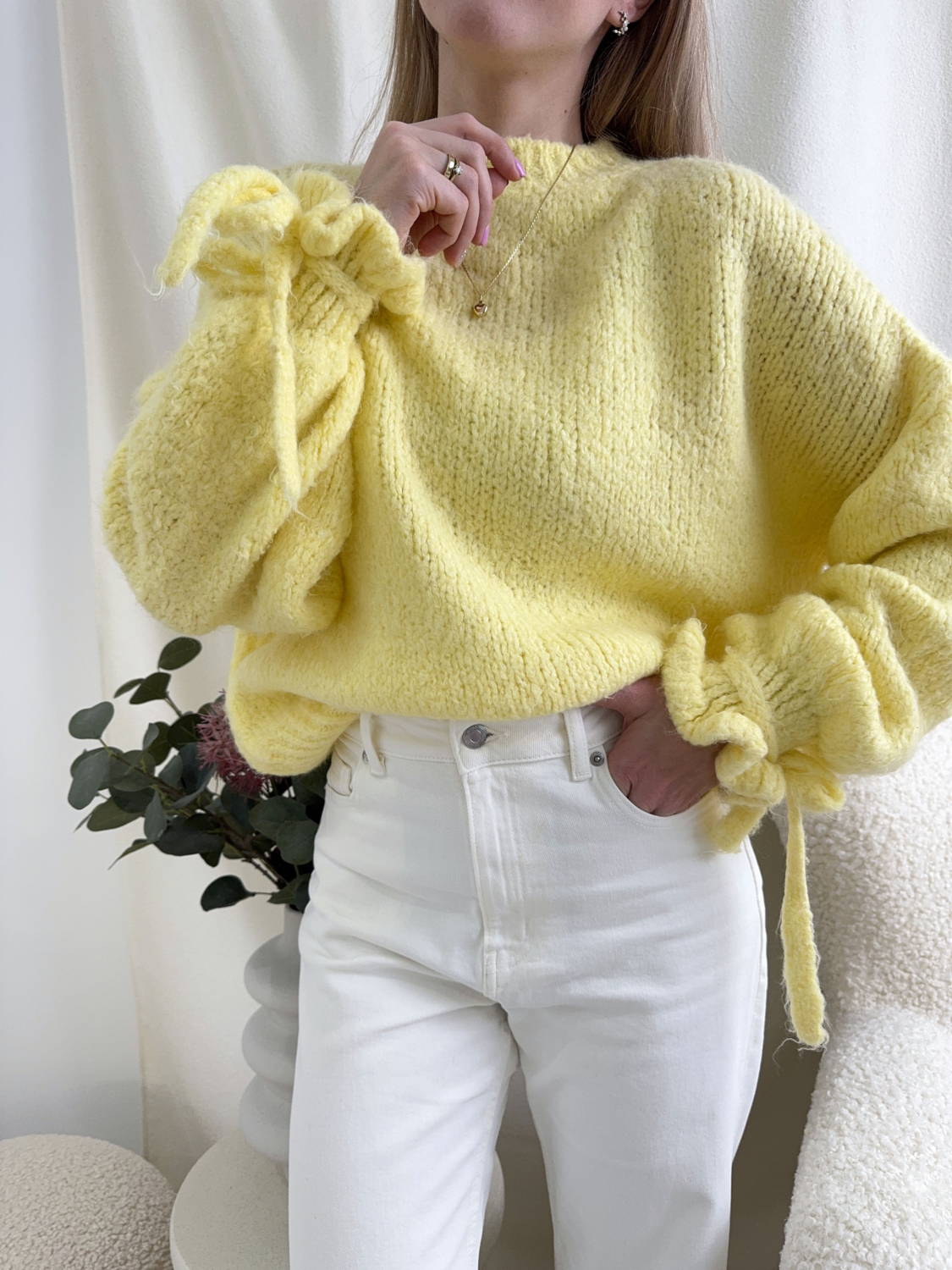 Cytrynowy Sweterek Z Wiązanymi Rękawami