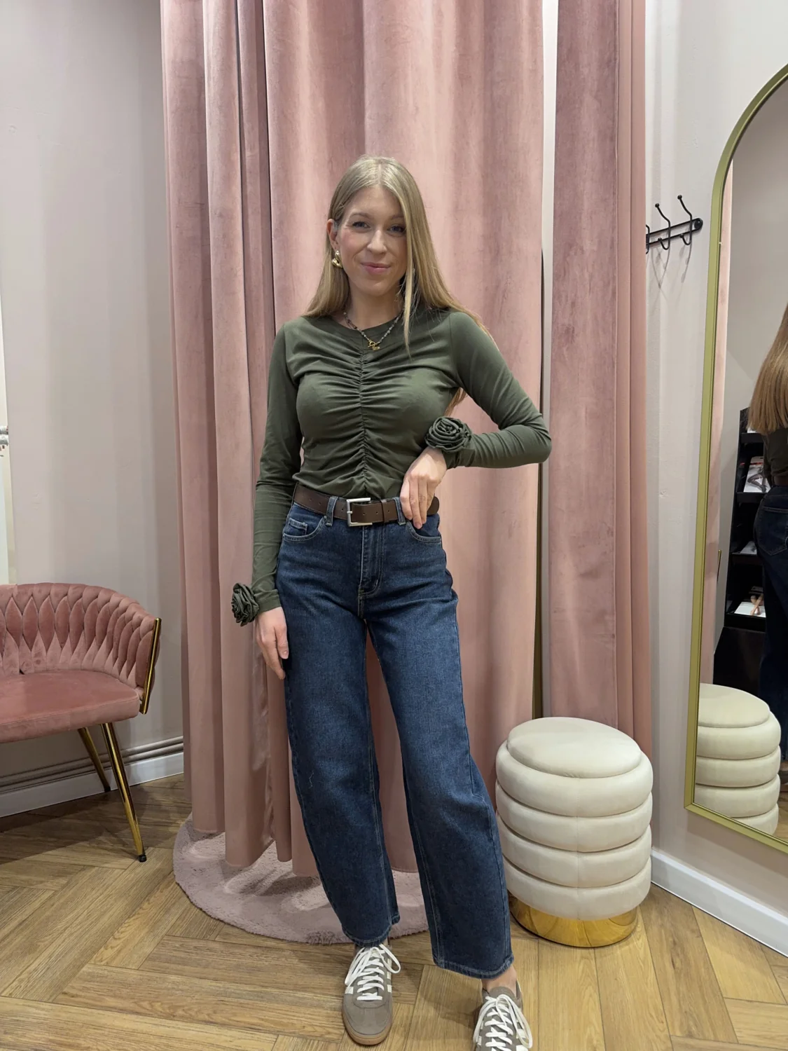 Modelka Agnieszka ma 165 cm wzrostu i na co dzień nosi rozmiar S – na zdjęciu w rozmiarze XS.