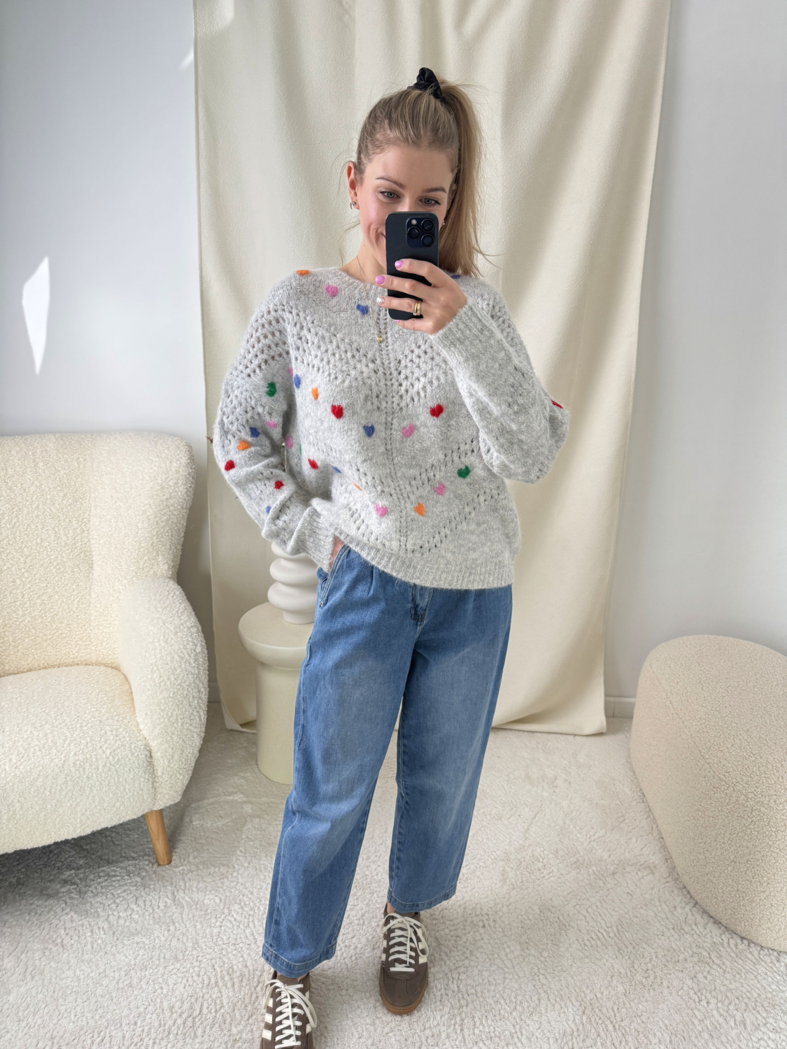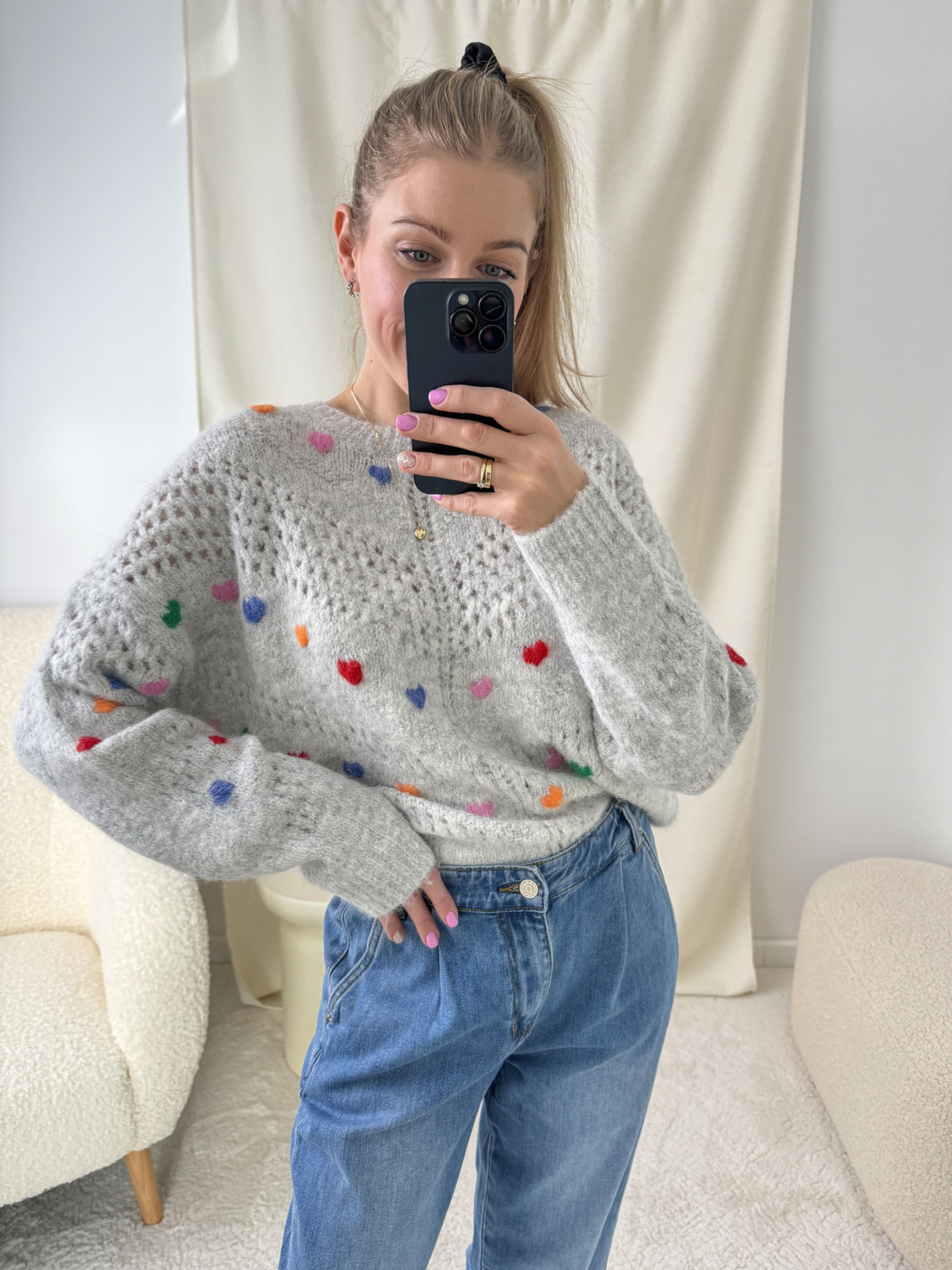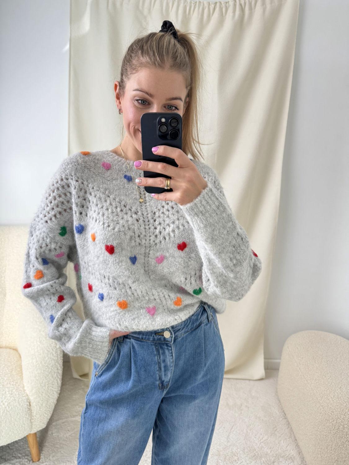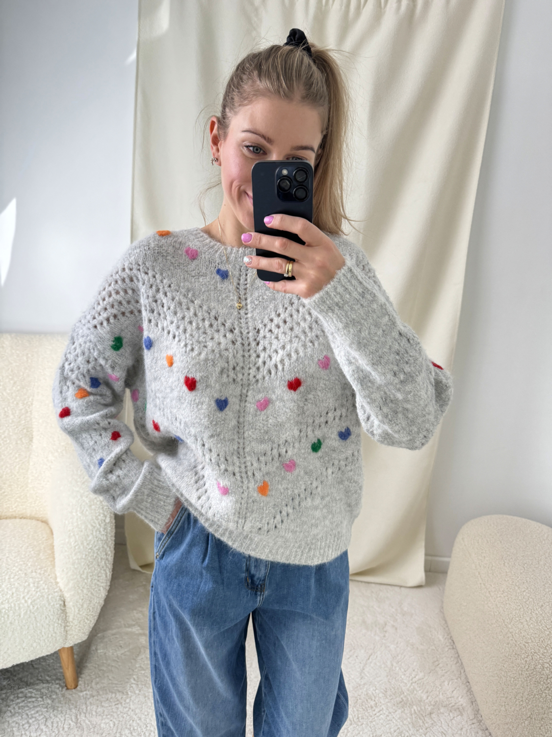 Szary Sweterek W Kolorowe Serduszka